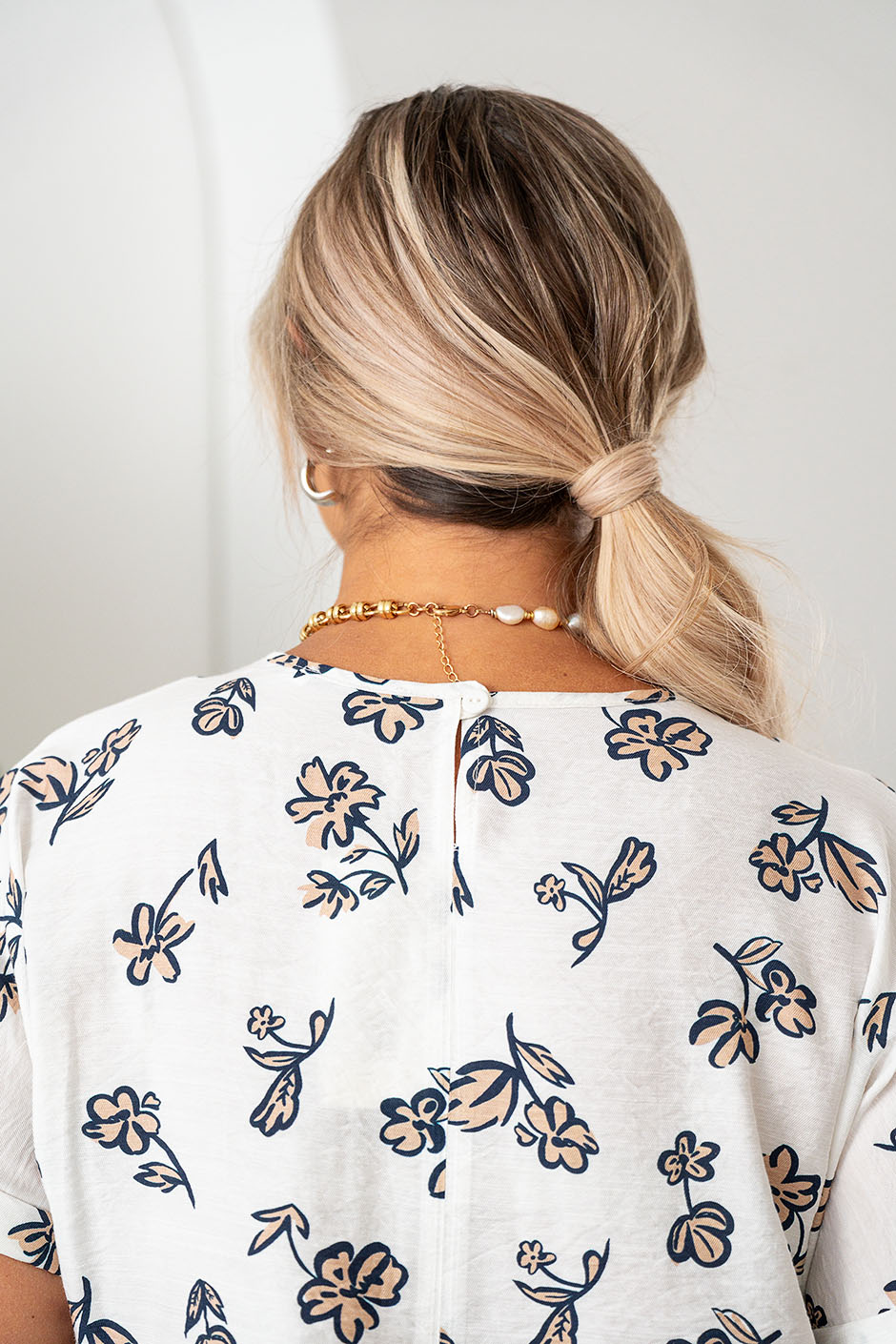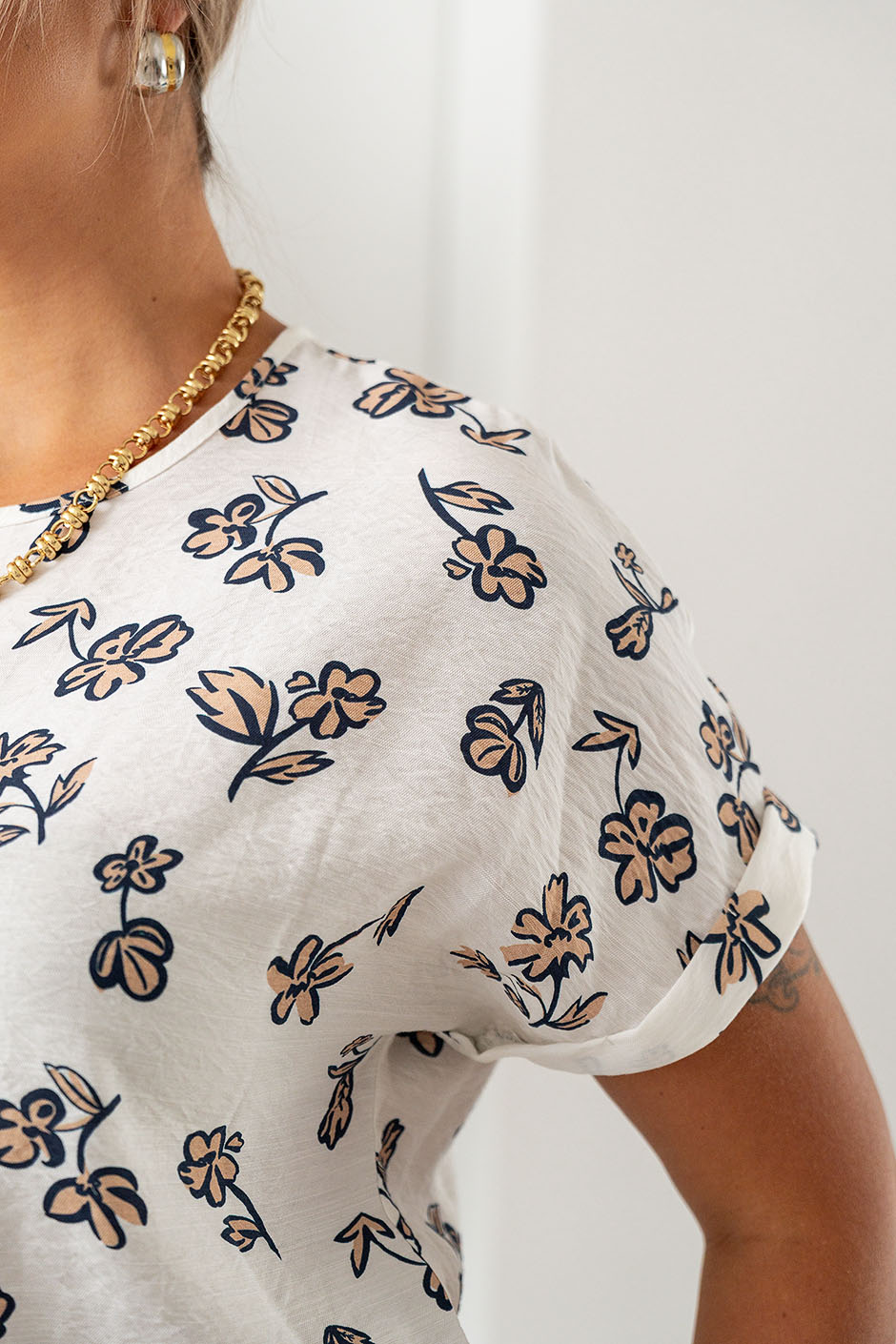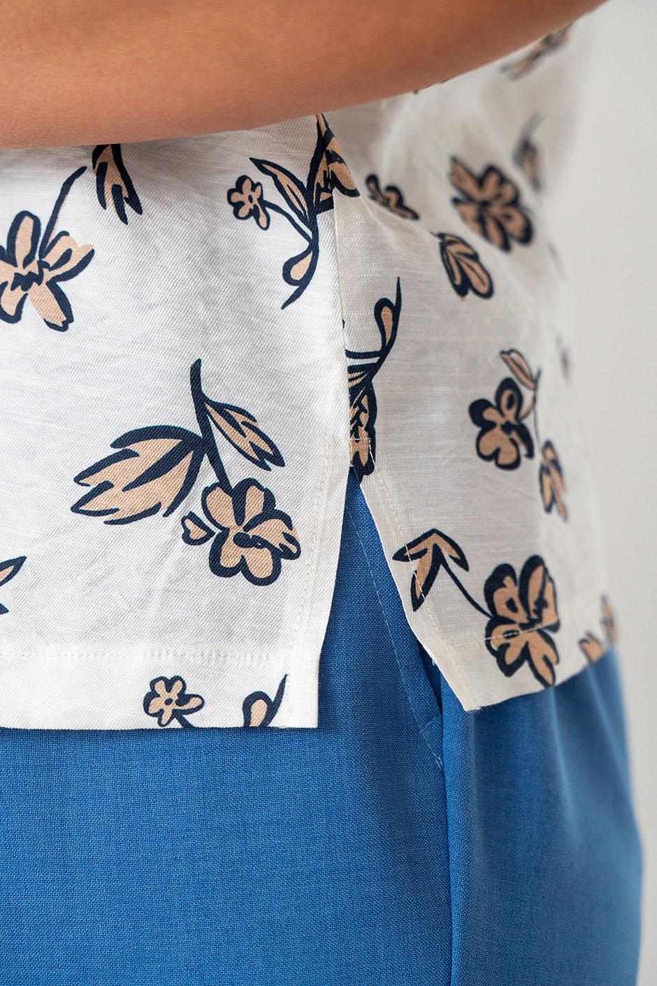 Ткань: лен набивной. Блузка свободного покроя, с цельнокроеным рукавом, по бокам небольшие разрезы. Рукав короткий на манжете. Длина изд.ок.62см.