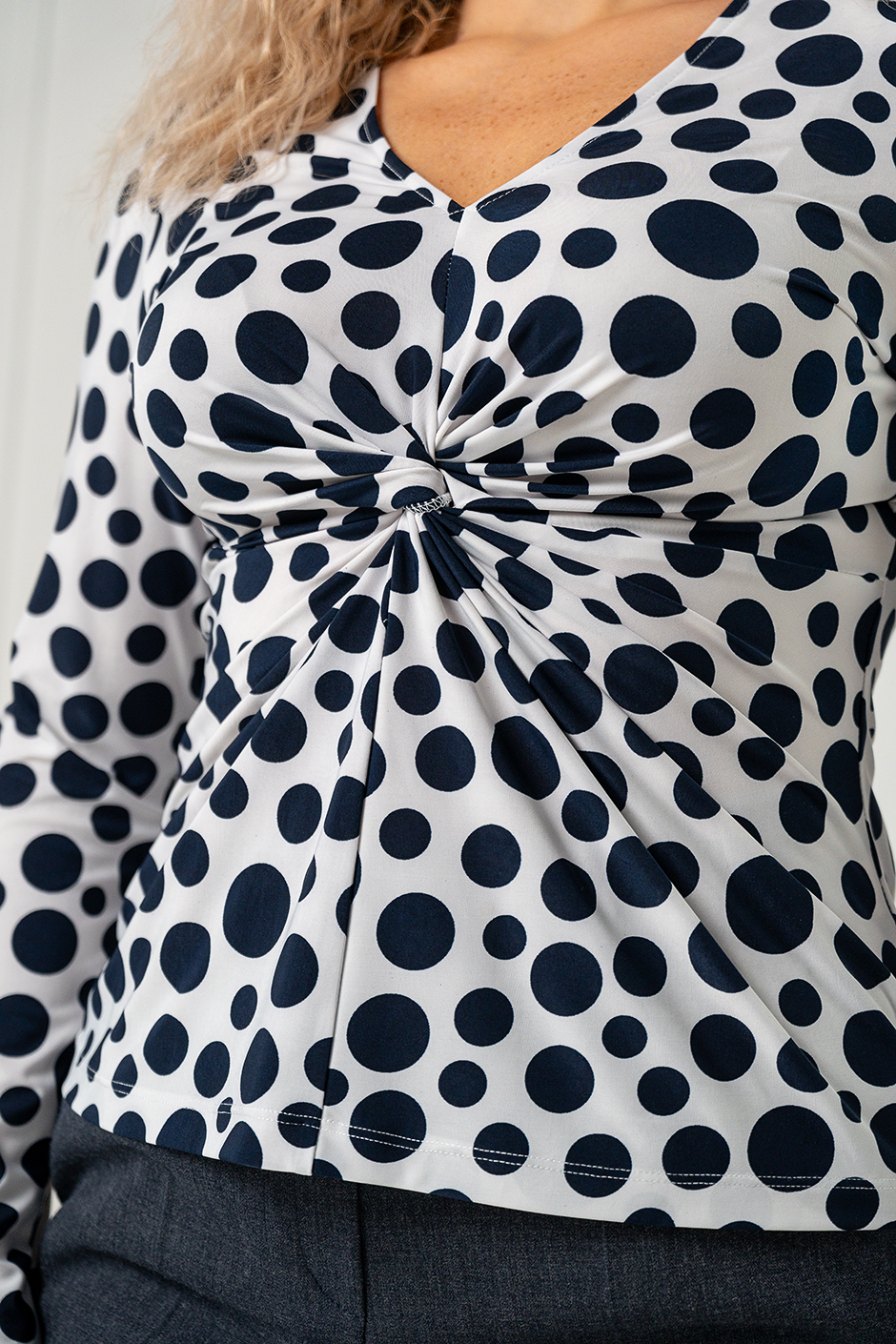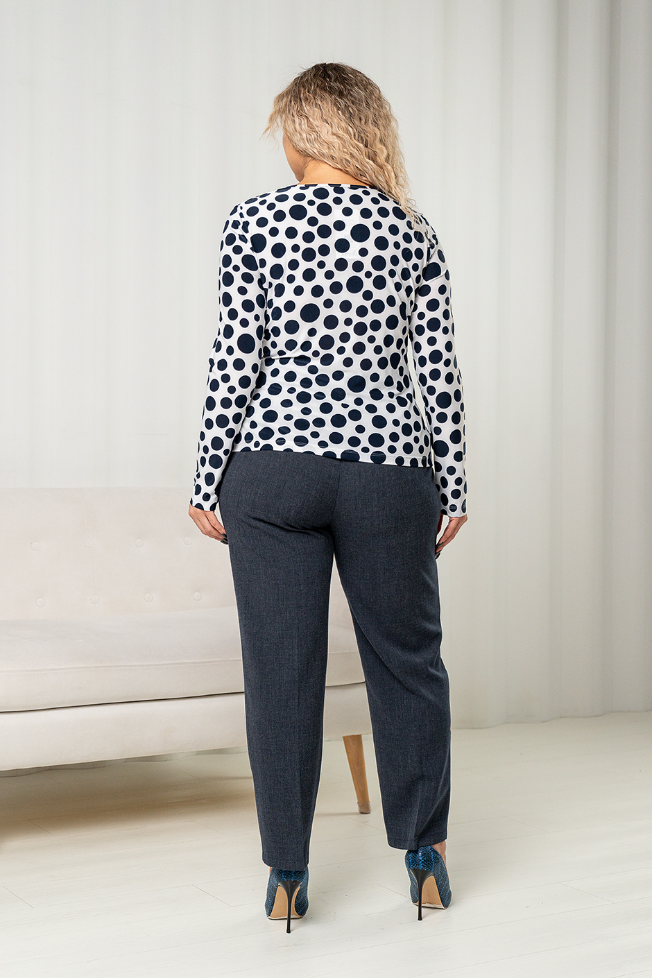 Ткань: вискоза. Блузка прямого покроя, с V образным вырезом, спереди перекрут, рукав втачной, длинный. Длина изд.ок.63см.