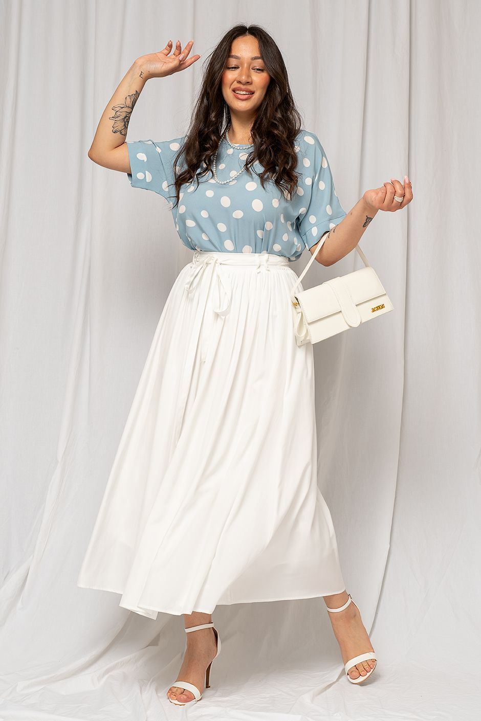 Ткань: искусственный шелк. Блуза свободного покроя, с цельнокроеным рукавом. Рукав короткий. Длина ок. 65 см.