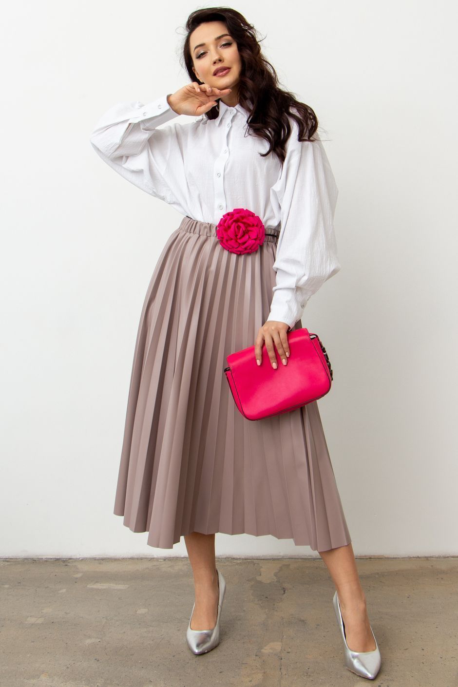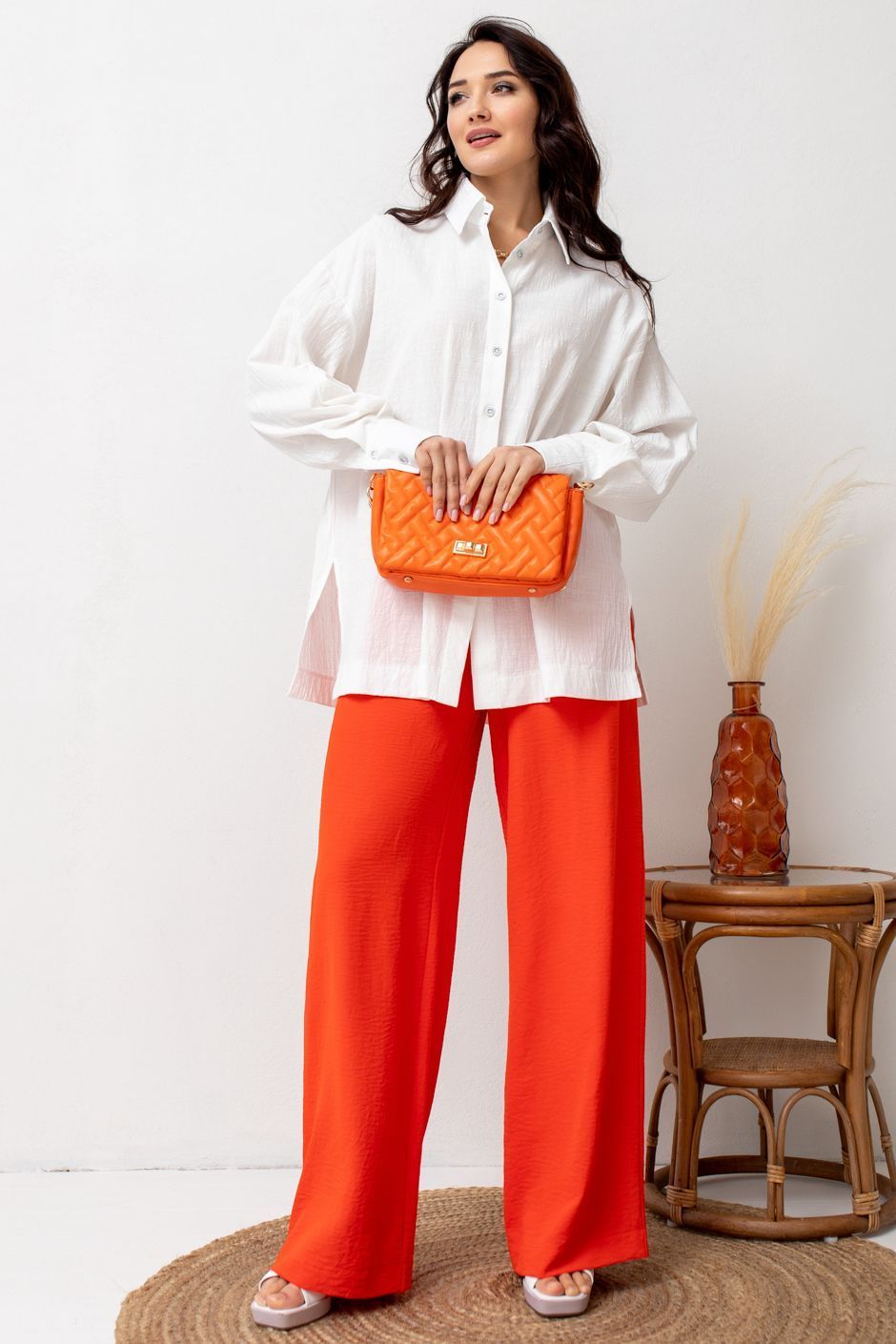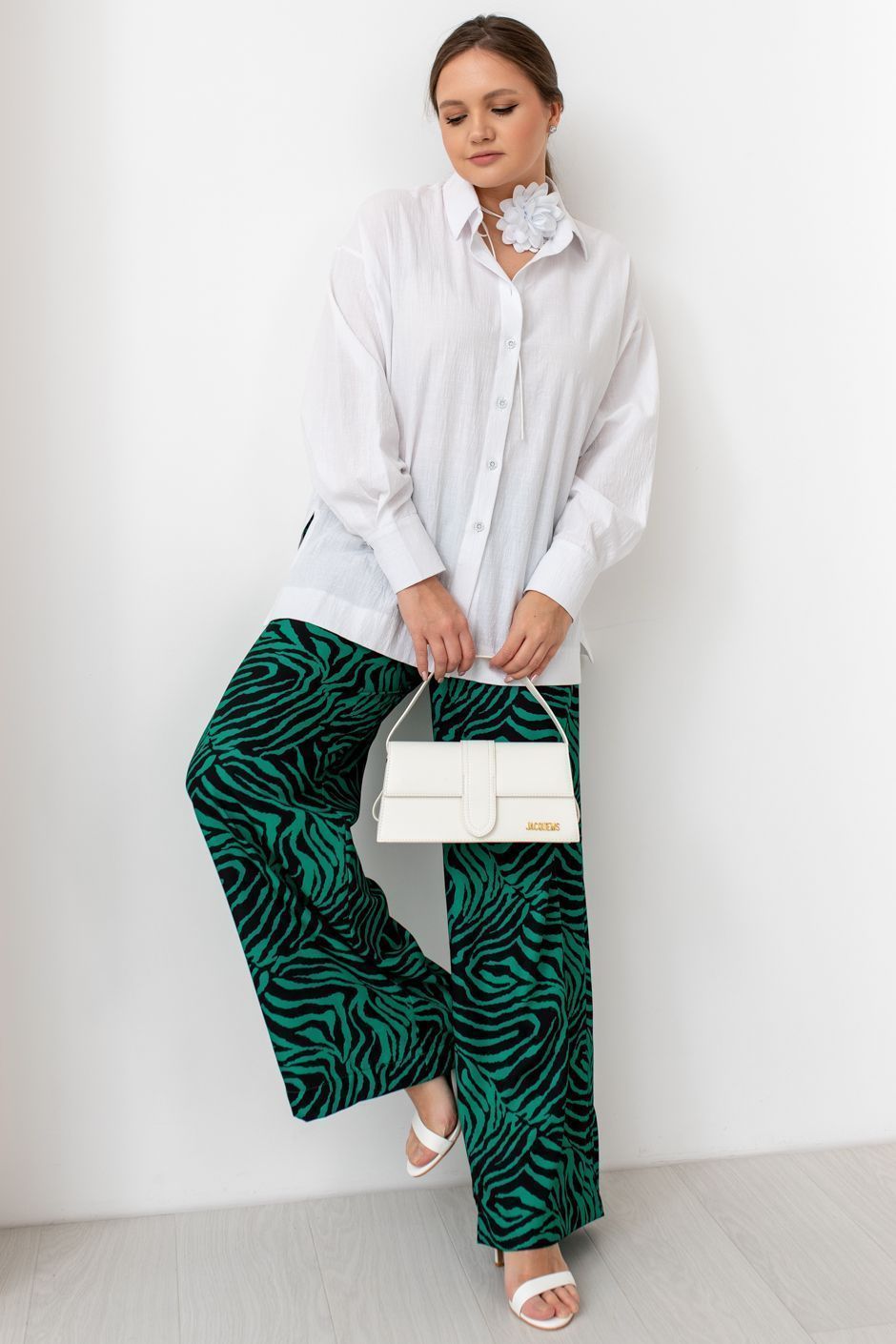 Ткань: хлопок однотонный с эффектом креш. Рубашка очень свободного покроя, линия плеча занижена, воротник на стойке, спереди застежка на пуговицы. Рукав длинный, на манжете.