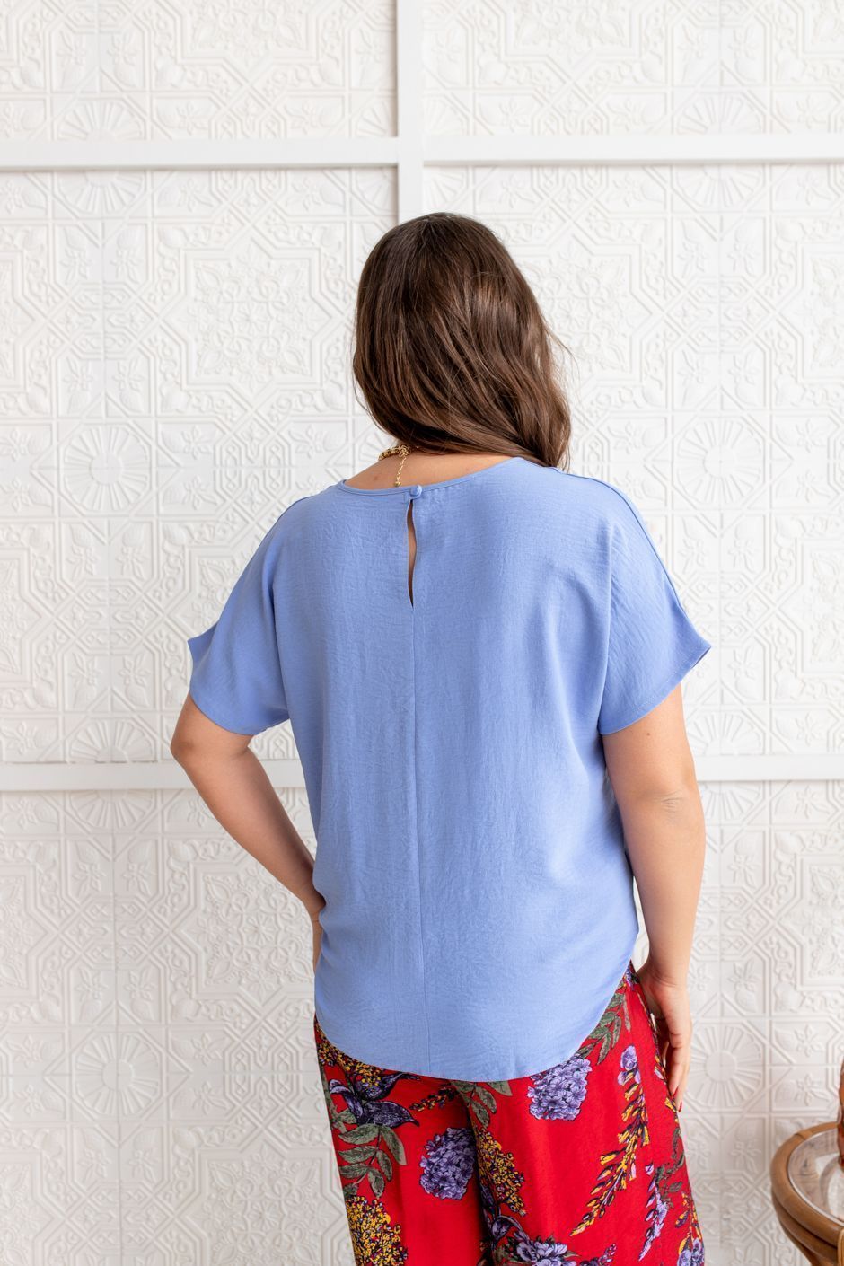 Ткань: вискоза крэш. Блуза простого свободного покроя, с цельнокроеным  рукавом. Рукав короткий. Длина ок. 60 см.