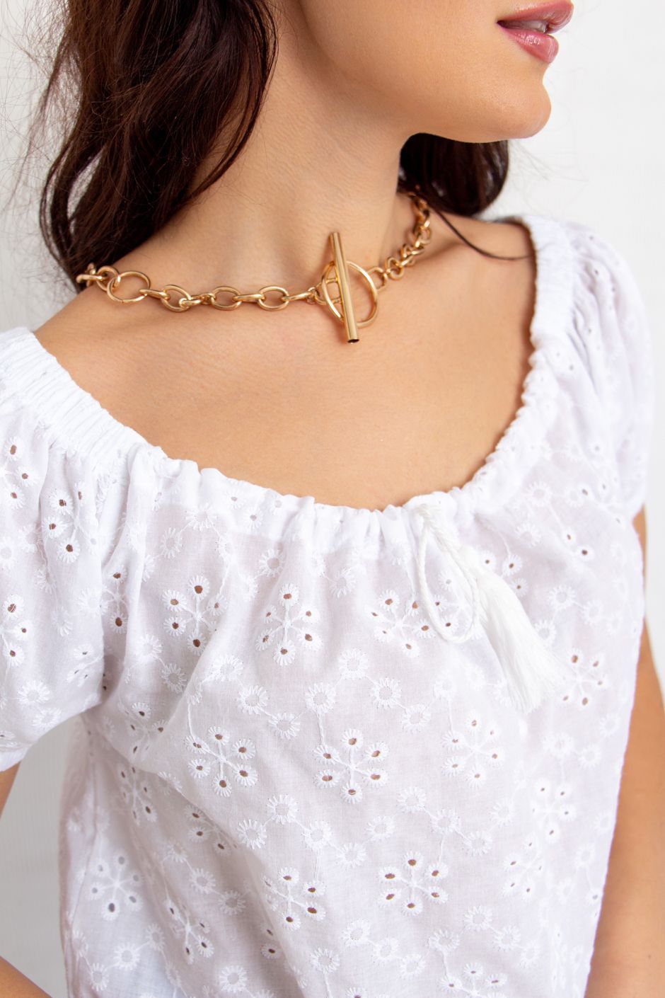 Ткань: хлопок шитье. Блузка покроя «крестьянка», Рукав короткий. Длина ок.60 см.