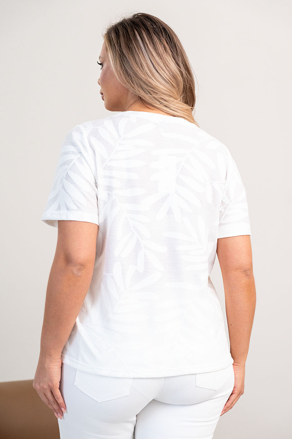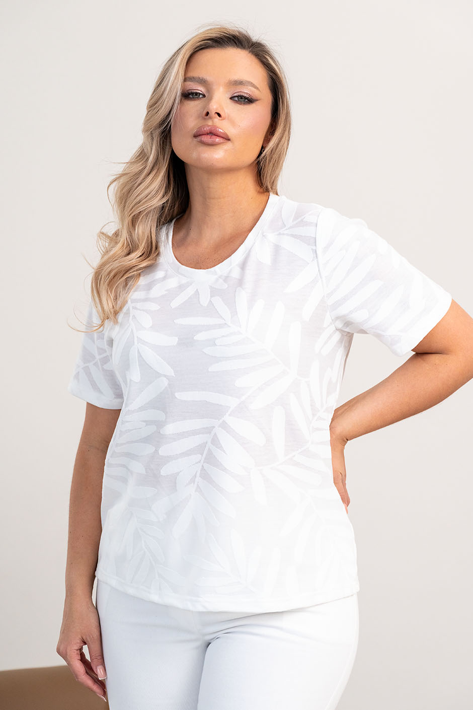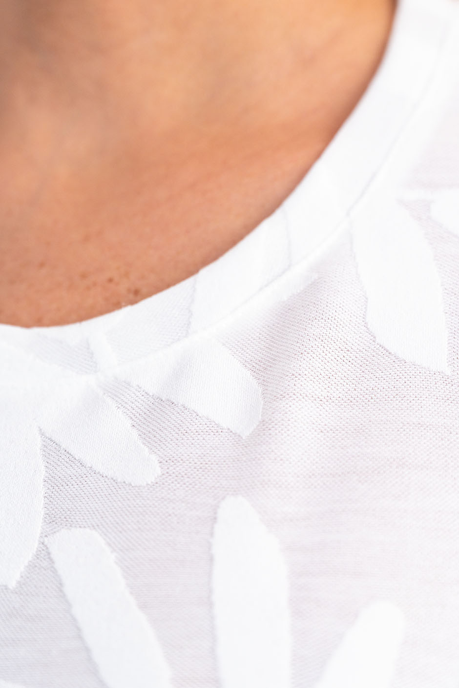 Ткань: трикотажное полотно с рисунком. Лонг простого покроя, с круглым вырезом, рукав втачной короткий. Длина изд.ок. 65 см.