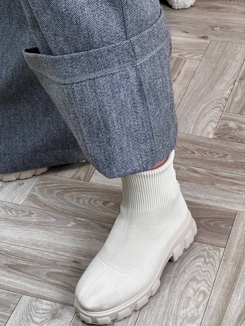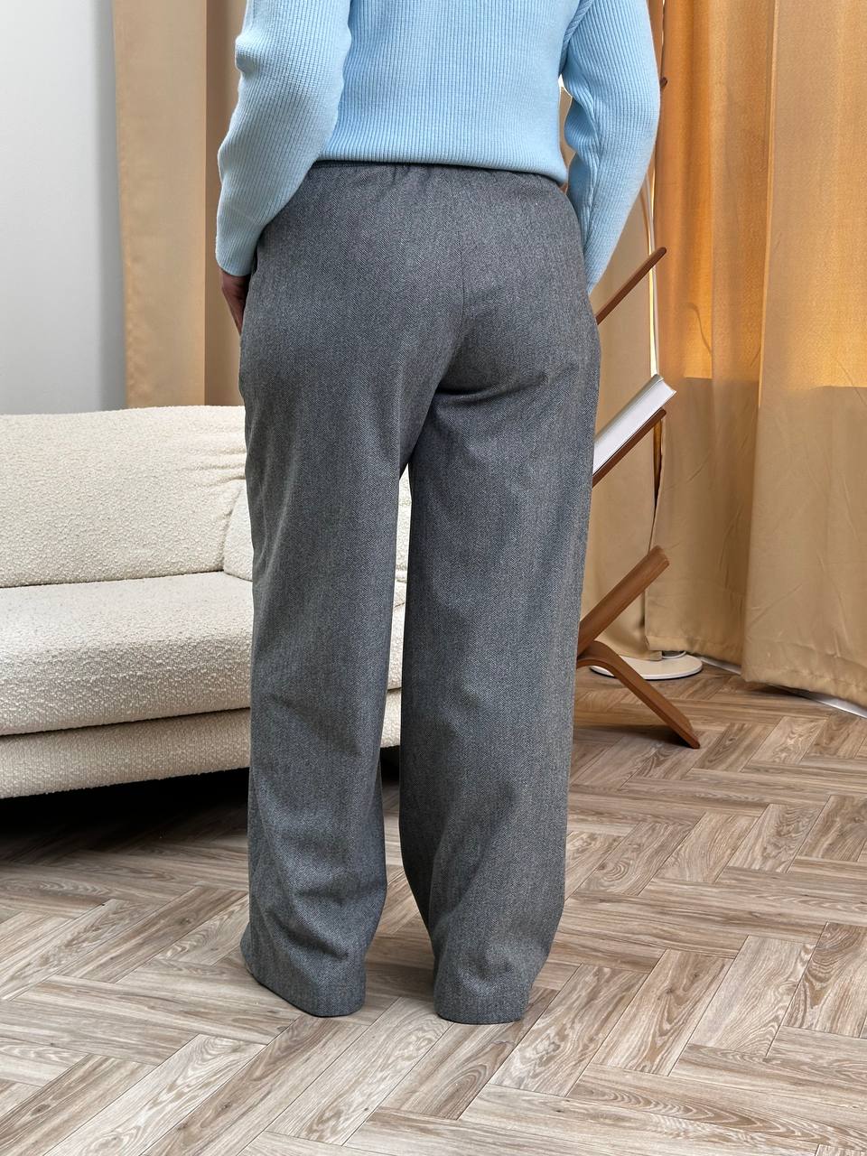 Ткань: трикотажное полотно. Брюки-паллацо,с широкими, сзади пояс на резине, в боковых швах косые карманы. Длина по внутреннему шву ок.81см.