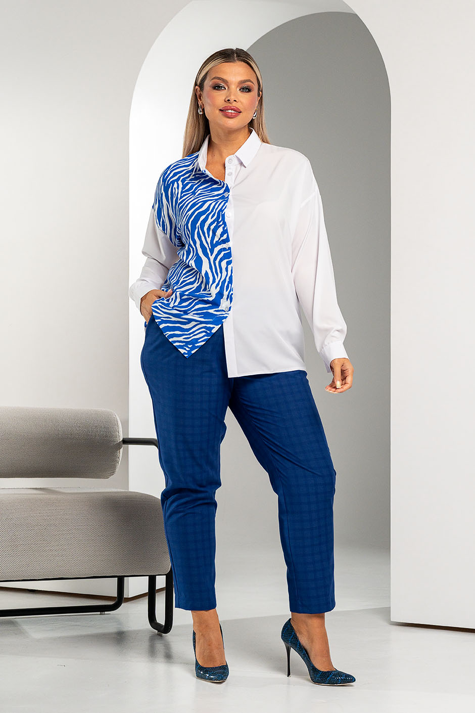 Брюки РБ-651 клетка синяя