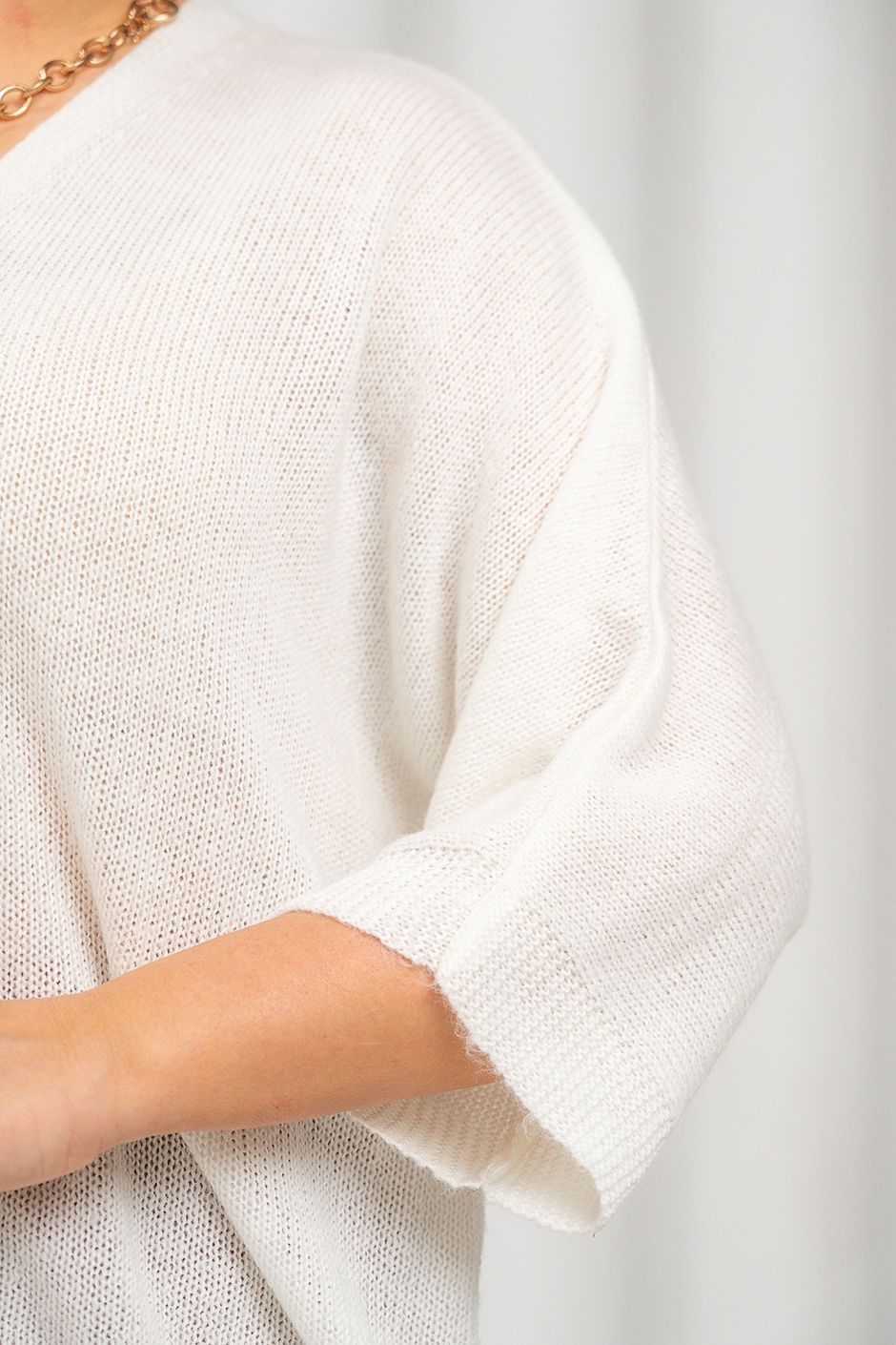 Ткань: мохер. Мягкий, тонкий джемпер на пуговицах, спущенный рукав, до локтя. Длина изд. ок. 60см.
