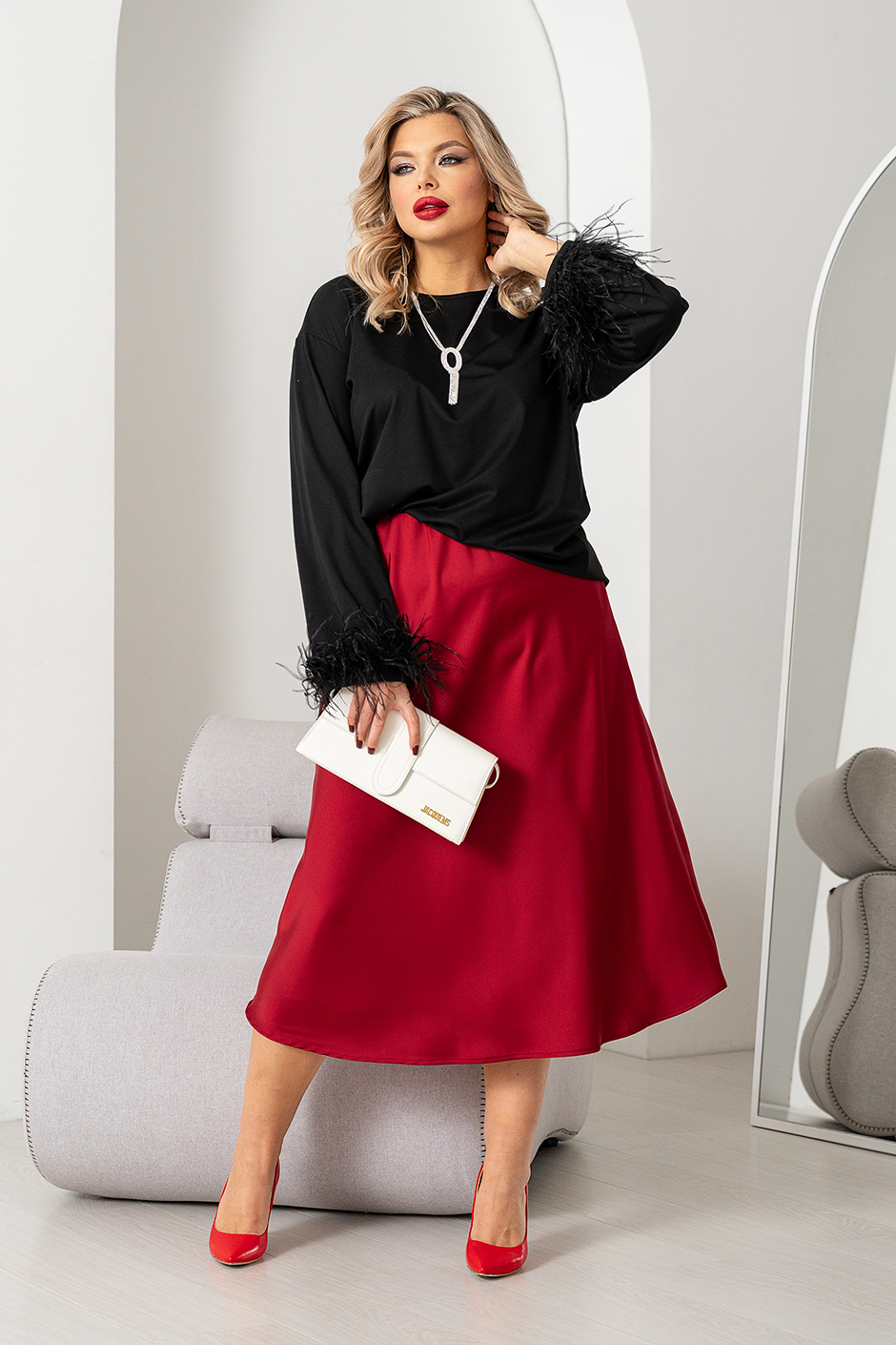 Ткань: хлопковое, трикотажное полотно. Лонгслив прямого силуэта, круглый вырез. Рукав цельнокроеный, длинный, с декоративной отделкой -перья. Длина изд.ок. 65см.