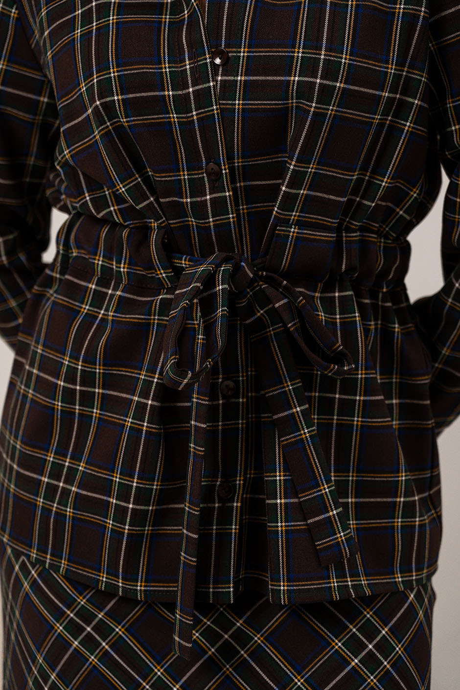 Ткань: костюмная в клетку.Костюм состоит из юбки и жакета.Юбка скроенная по косой, пояс на резине.Длина изд. ок.70 см. Жакет прямого силуэта, на кулиске.Рукав длинный на манжете. .Длина изд.ок.70см.