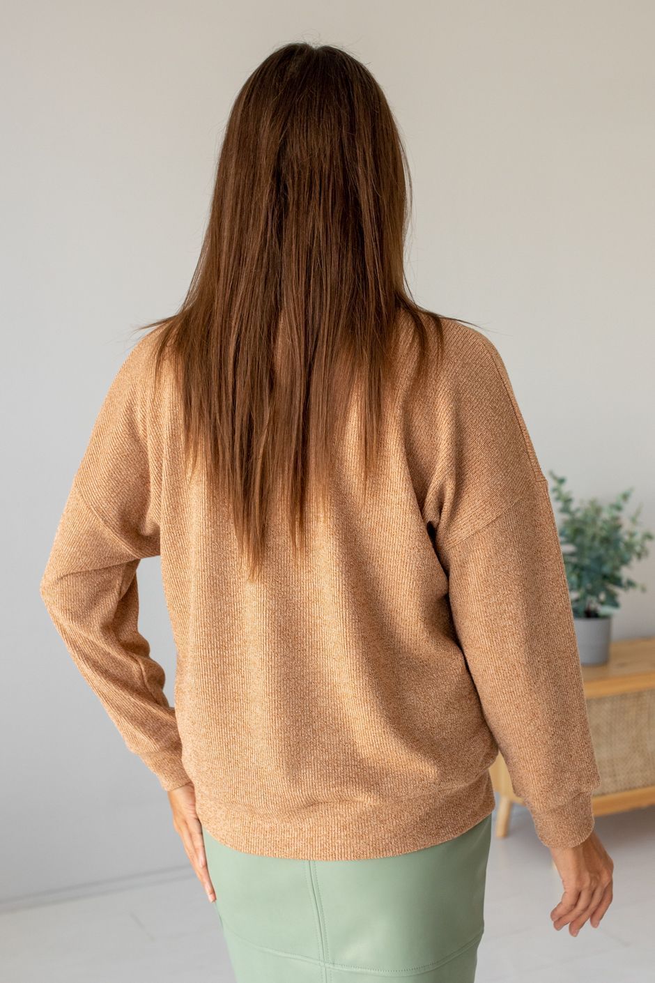 Ткань: трикотажное полотно однотонное. Джемпер свободного покроя, воротник шалевый, в рамке, линия плеча занижена, низ изделия на ножке. Рукав ¾, на манжете. Длина ок.65см.